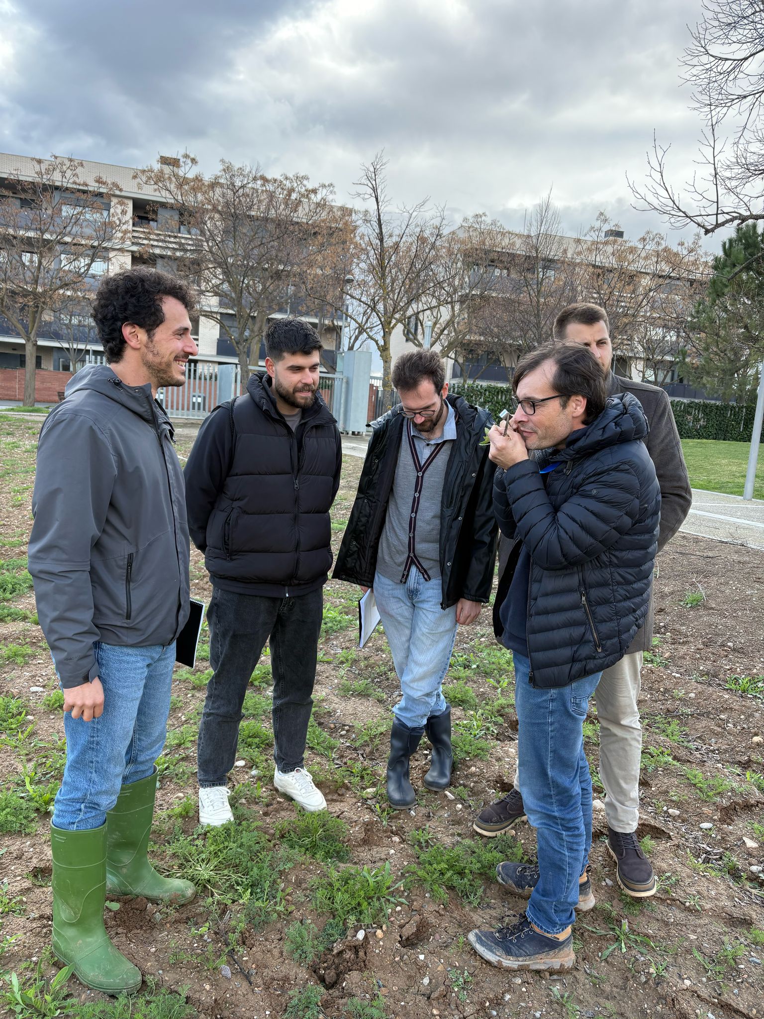 Figure 3: Dr Joel Torra in the experimental fields of the UdL looking at weed seedlings
